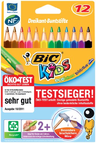 BIC KIDS Buntstift ECOlutions EVOLUTION Triangle, dreikantiger Schaft, 12 Farben sortiert, Kartonetui à 12 Stück,: Amazon.de: Bürobedarf & Schreibwaren