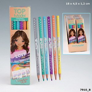 Beschreibung TopModel Buntstifte Trendfarben mit Design Tipps Jetzt kannst du Deine Topmodels ausmalen und designen wie Du es möchtest. Das Set enthält 6 Buntstifte